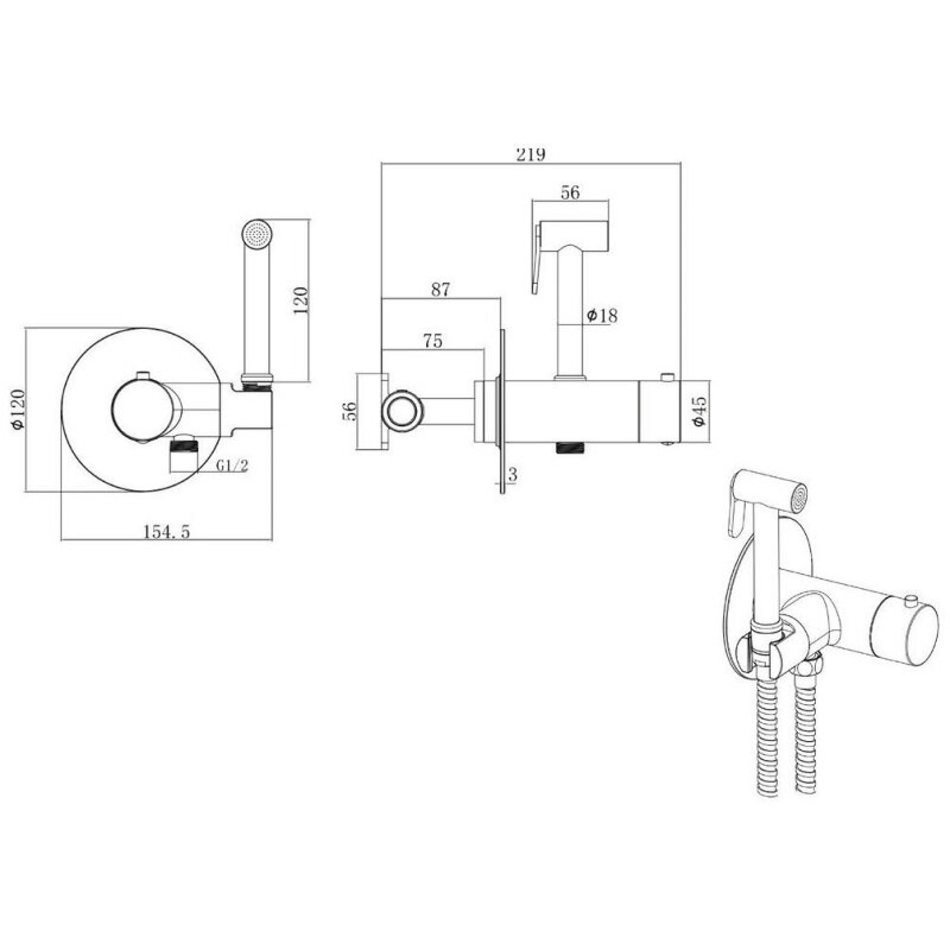 Гигиенический душ Allen Brau Thermo Rund, 5.60001-00, с термостатическим смесителем, хром