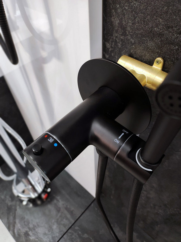 Гигиенический душ Allen Brau Thermo Rund, 5.60001-31, с термостатическим смесителем, черный матовый
