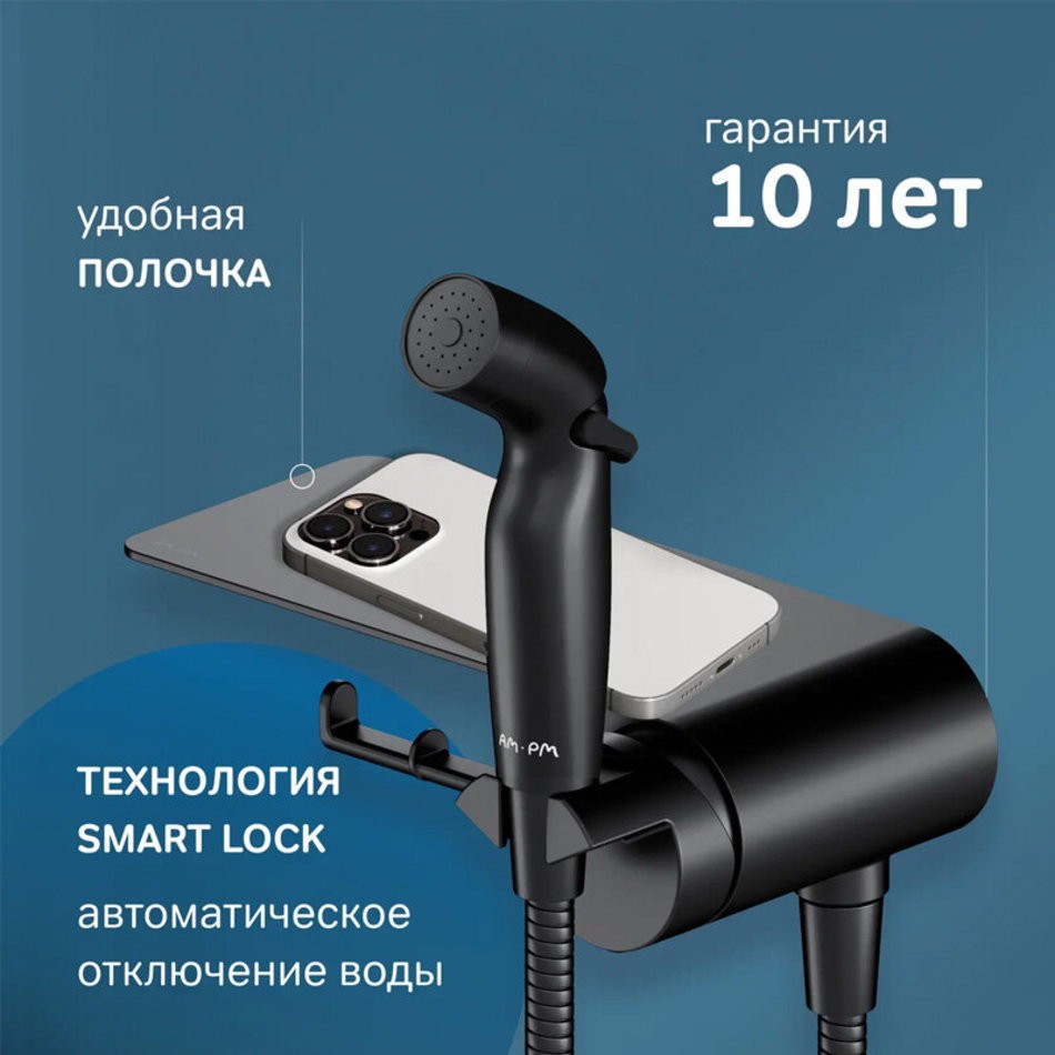 Встречайте коллекцию Func – самую функциональную коллекцию в линейке AM.PM. Наши инженеры продумали и учли каждую деталь, чтобы сделать процесс использования продуктов максимально простым и комфортным для всех членов семьи. Единственное на рынке гигиеническое решение с технологией Smart Lock: благодаря инновационному устройству держателя вы больше не забудете выключить смеситель. Просто поставьте лейку в холдер и вода автоматически выключится. Это удобно и позволяет экономить воду, что делает эту технологию еще более привлекательной для использования в ванной комнате.Весь продукт представляет собой удобную полочку, на которой можно разместить все, что необходимо вам под рукой. На интегрированном держателе можно размещать туалетную бумагу, а на крючке - полотенце.