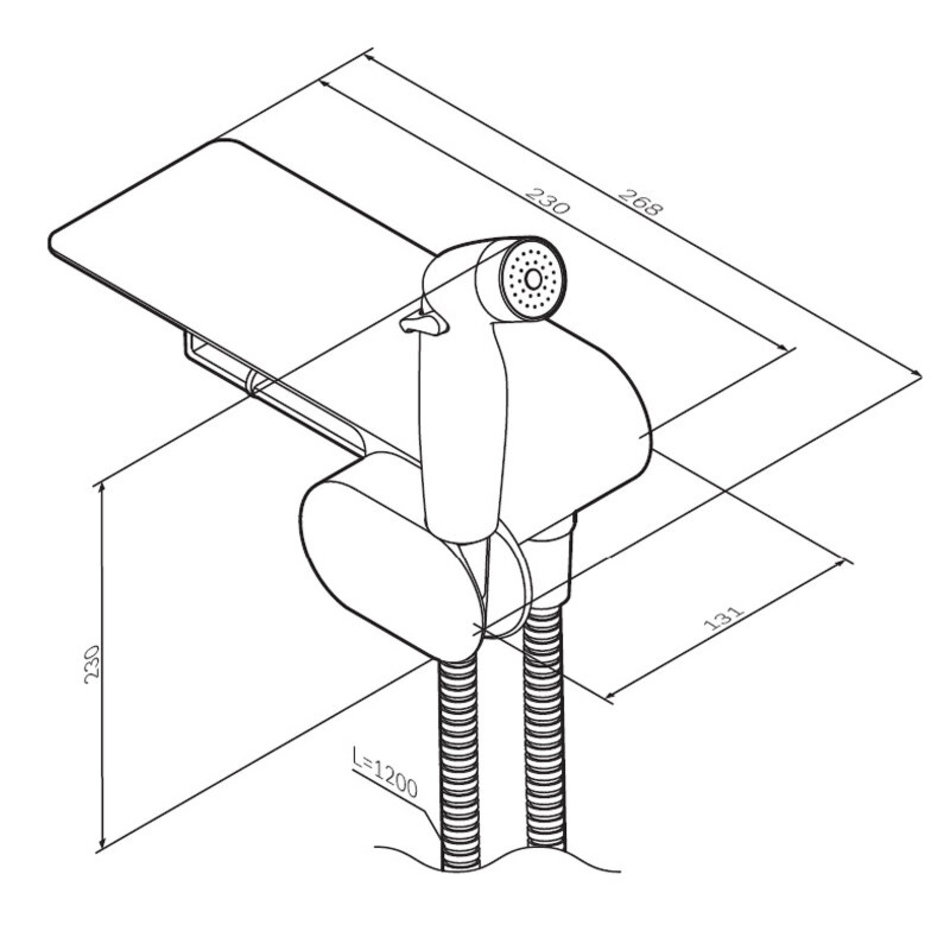 Состав поставки: Смеситель, гигиеническая лейка, шланг 120 см, полочка, комплект креплений, инструкция.