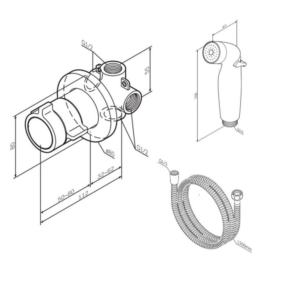 - Размер ручного душа (ВхШхГ): 158х67х33