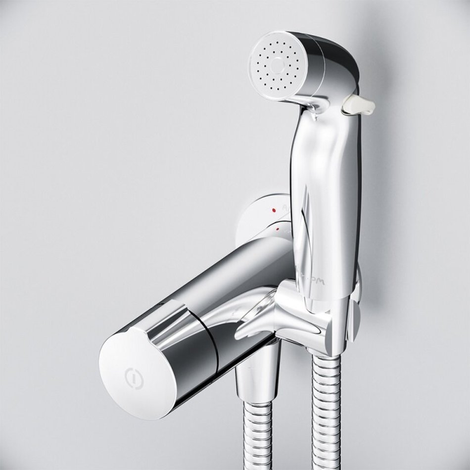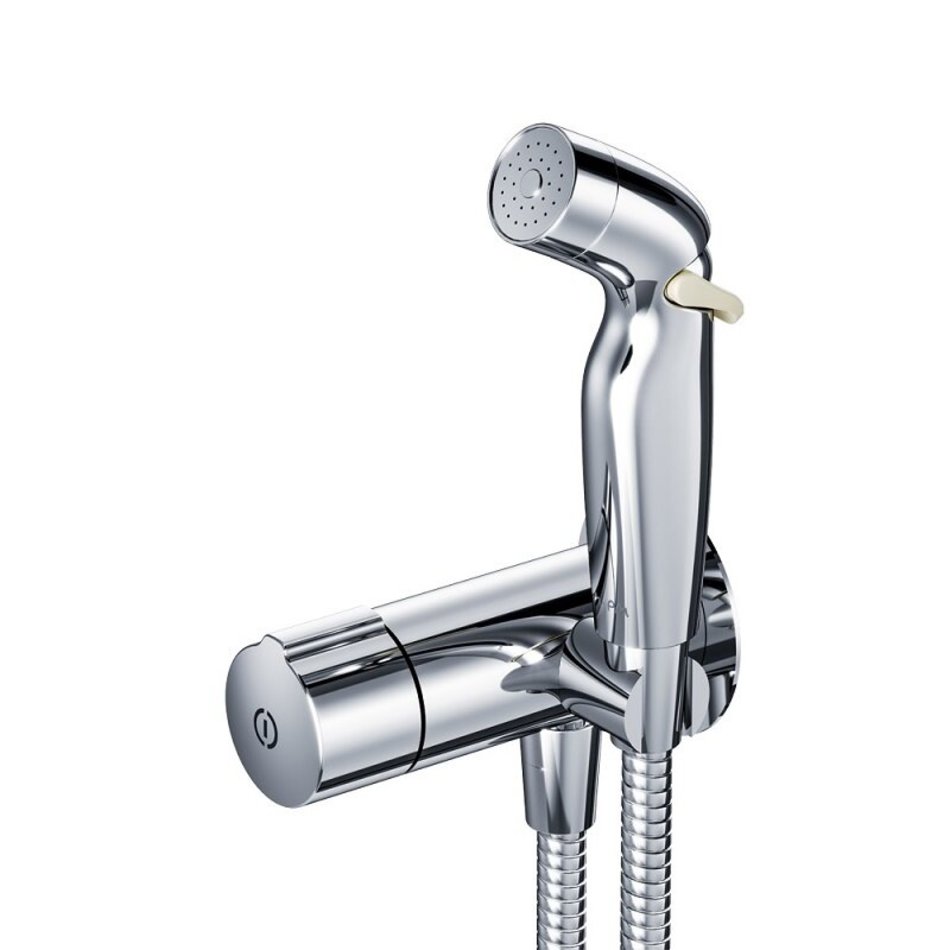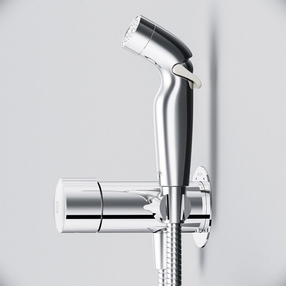 Впервые на рынке гигиеническое решение с нажимным смесителем. Интуитивная понятная система управления TouchReel для включения/выключения смесителя одним нажатием. Новая эргономичная форма лейки идеально ложится в руку. Для максимального удобства мы разработали возможность регулировки воды прямо на лейке. TouchReel - керамический картридж с регулировкой потока воды, с термоэлементом.