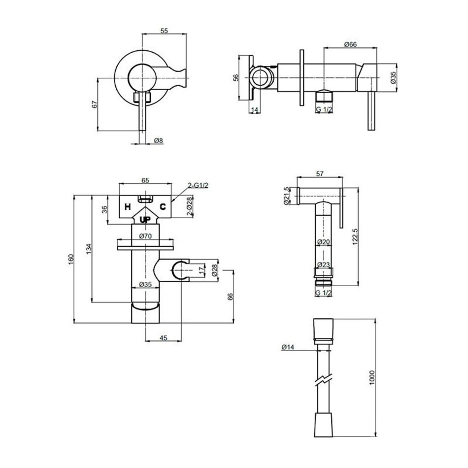 Гигиенический душ Aquame Siena AQM6217BN, со смесителем, цвет никель шлифованный