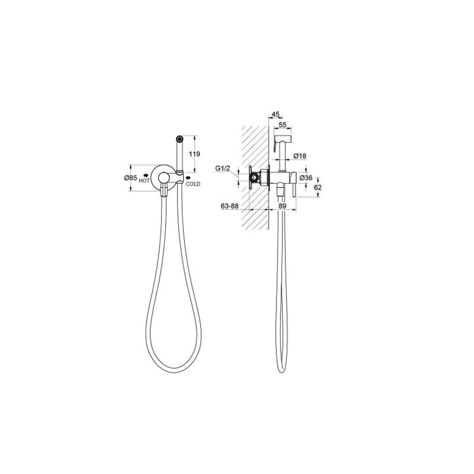 - Душевой гарнитур: гигиеническая лейка, шланг, шланговое подсоединение с держателем