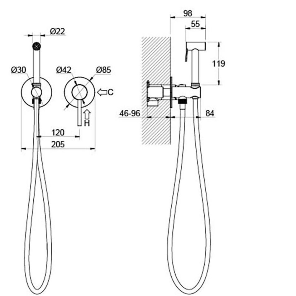 - Смеситель для гигиенического душа (внешняя и скрытая часть)