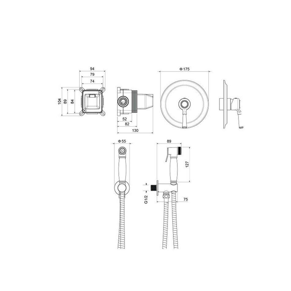 - Душевой гарнитур: гигиеническая лейка, шланг, шланговое подсоединение с держателем