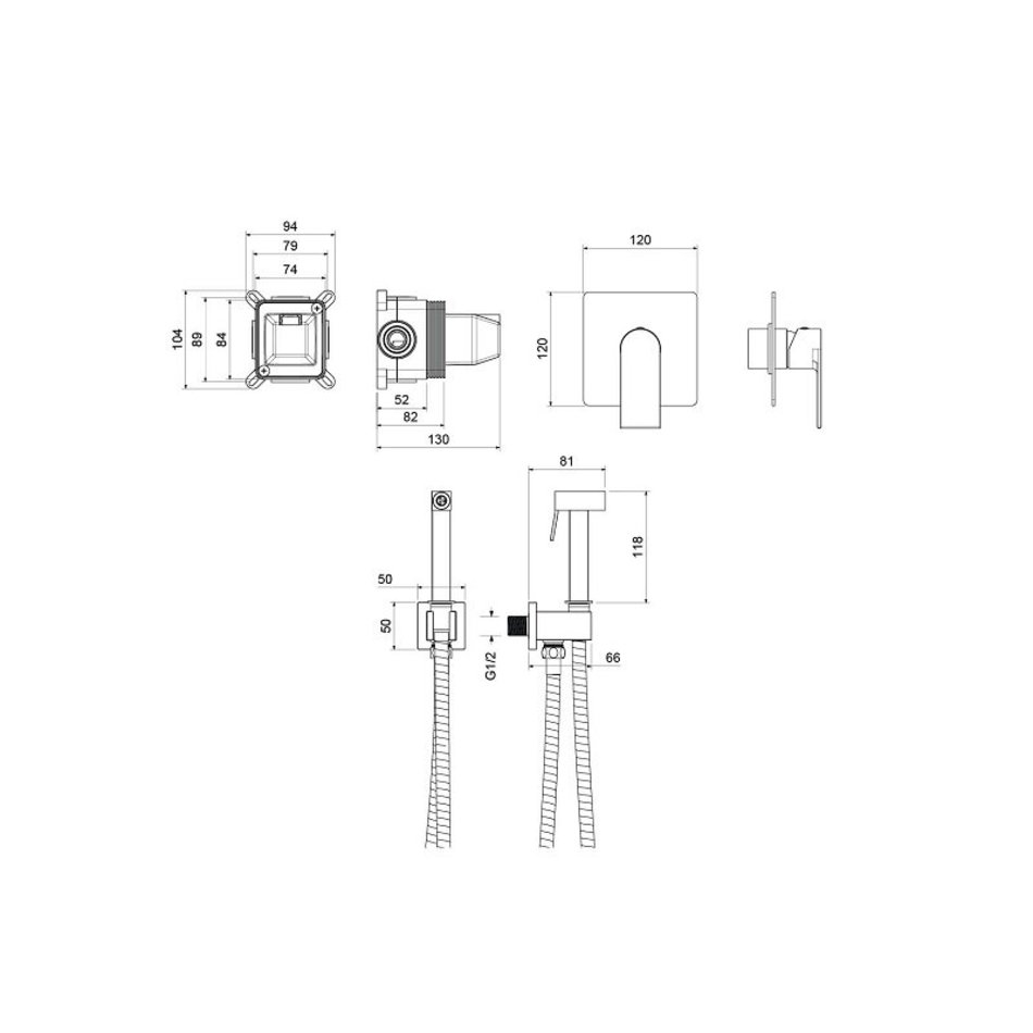 - Душевой гарнитур: гигиеническая лейка, шланг, шланговое подсоединение с держателем