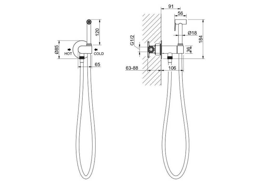 - Душевой гарнитур: гигиеническая лейка, шланг, шланговое подсоединение с держателем