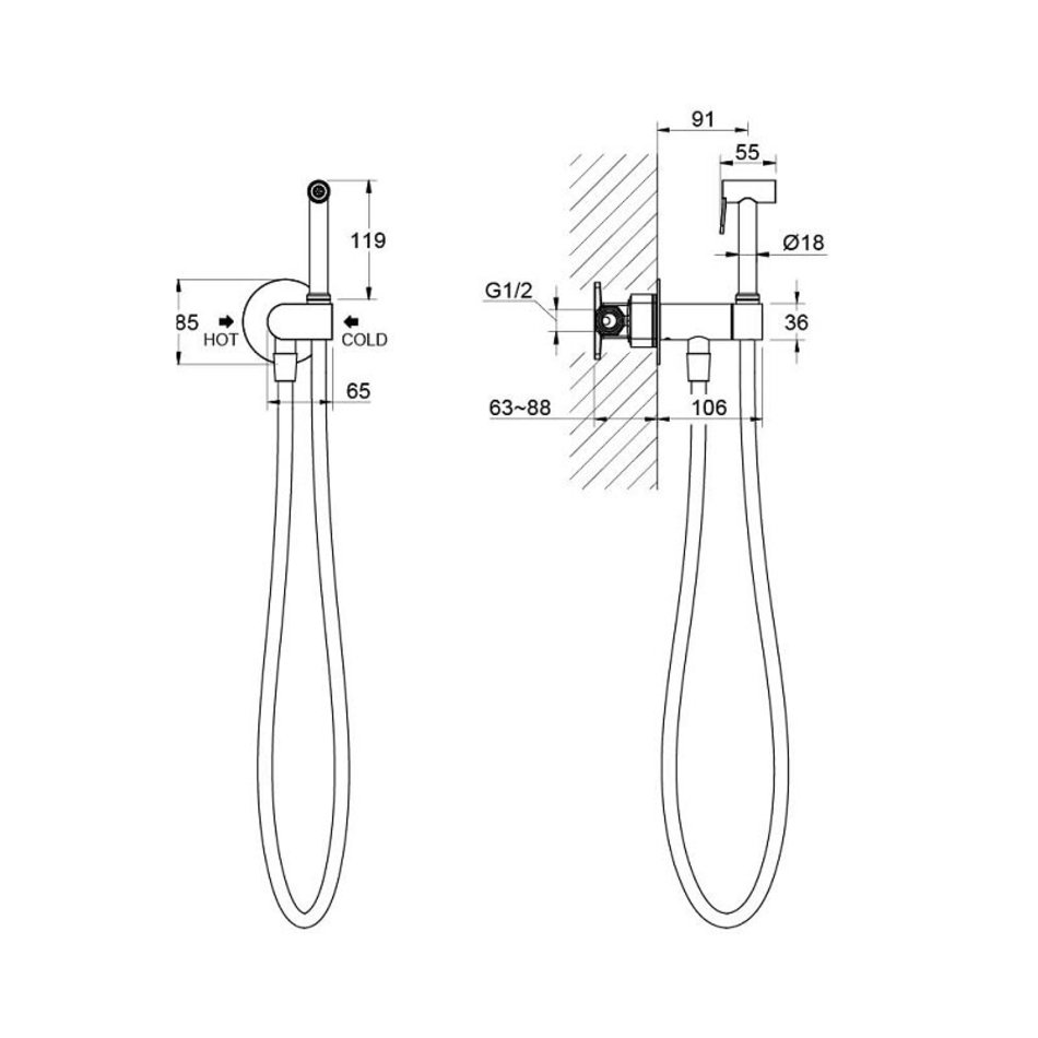 - Душевой гарнитур: гигиеническая лейка, шланг, шланговое подсоединение с держателем