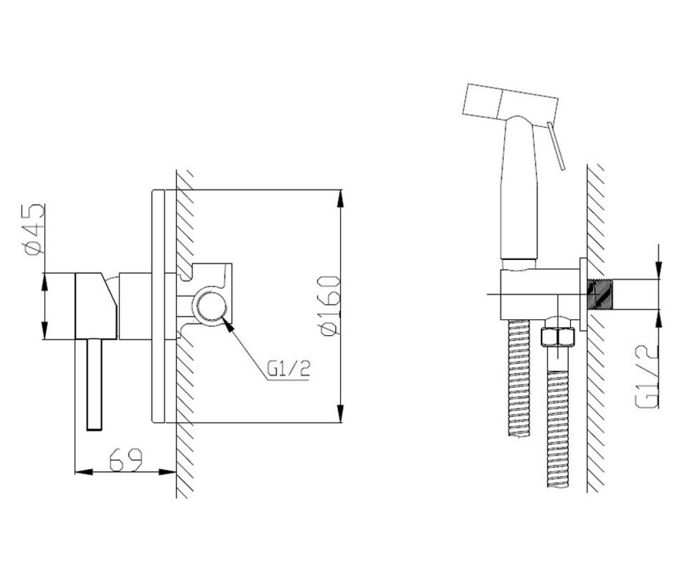 - Комплектация: смеситель, шланг, гигиеническая лейка, держатель лейки, крепления