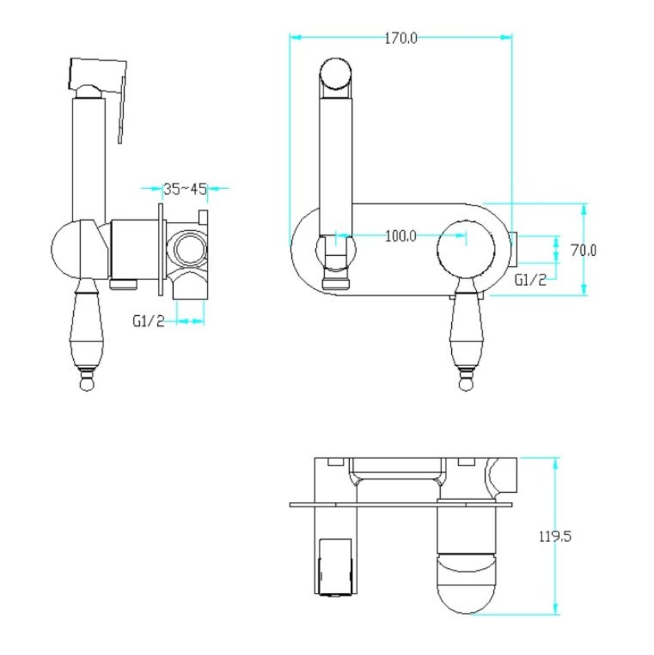 Гигиенический душ Boheme Imperiale, 425, со смесителем, золото