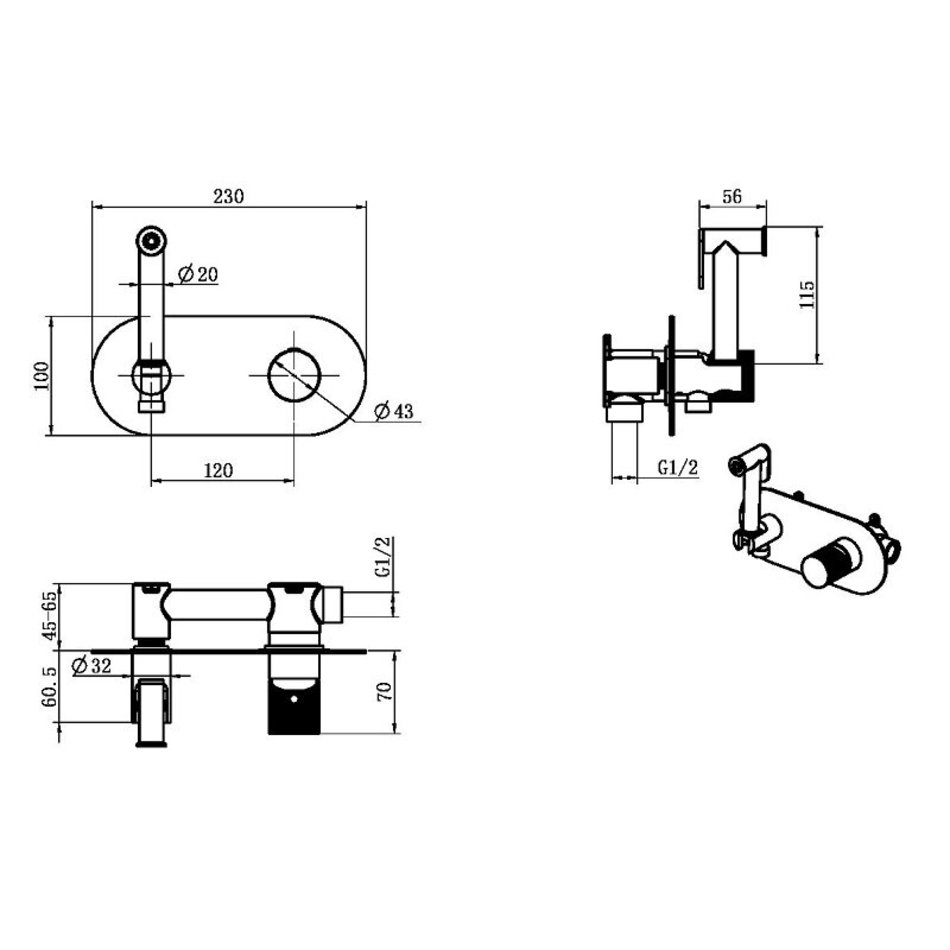 В комплекте поставки: cмеситель (внешняя и внутренняя часть), гигиенический душ со шлангом.