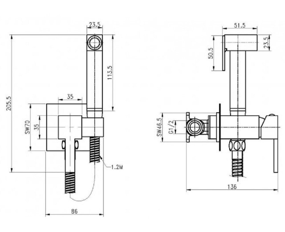 ВНИМАНИЕ! Шланг и лейка не рассчитаны на постоянное запорное давление, после использования необходимо закрыть подачу воды в смесителе.