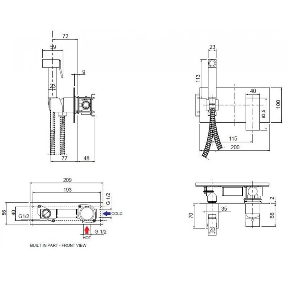 Гигиенический душ Cezares Unika, UNIKA-DIF-NOP, со смесителем, черный матовый