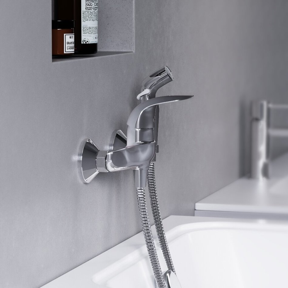 - Вдохновлен скандинавской природой: сферические изгибы, подчеркнутые ярким блеском хрома, сложились в оригинальный силуэт, словно созданный для современных ванных комнат.