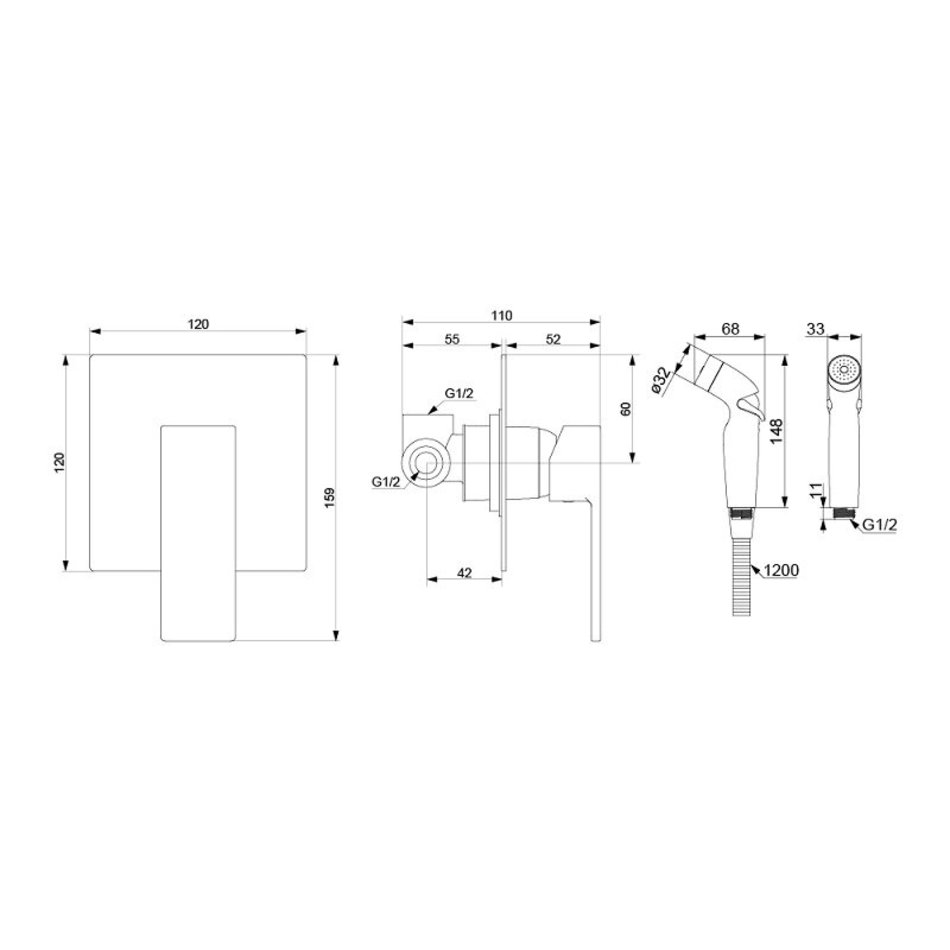 - Режимы душа: 1 режим гигиенического душа: Spray