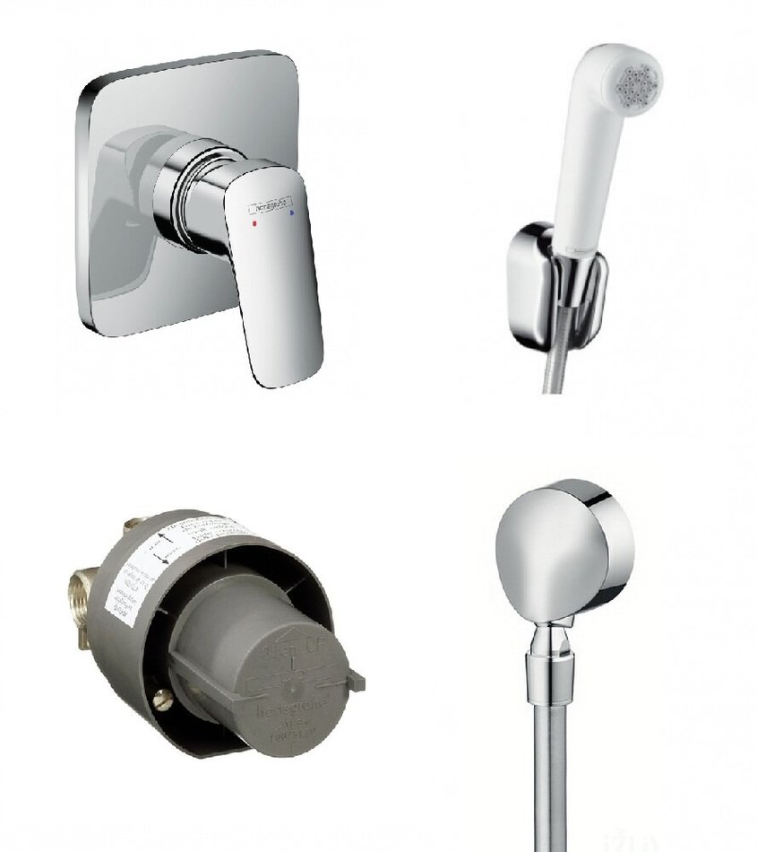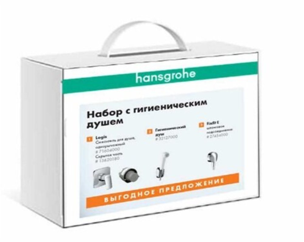 Гигиенический душ Hansgrohe, со смесителем, хром/белый, 716040000/13620180/27454000/32127000