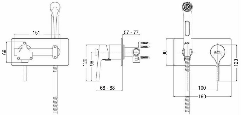 - Решение в одной коробке: смеситель, лейка, держатель, шланговое подключение, шланг