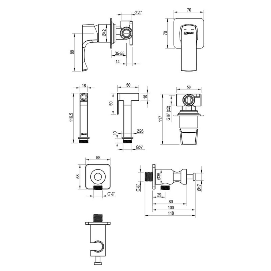 - Аксессуары в комплекте: лейка для биде с регулятором напора воды, шланг 1,2 м