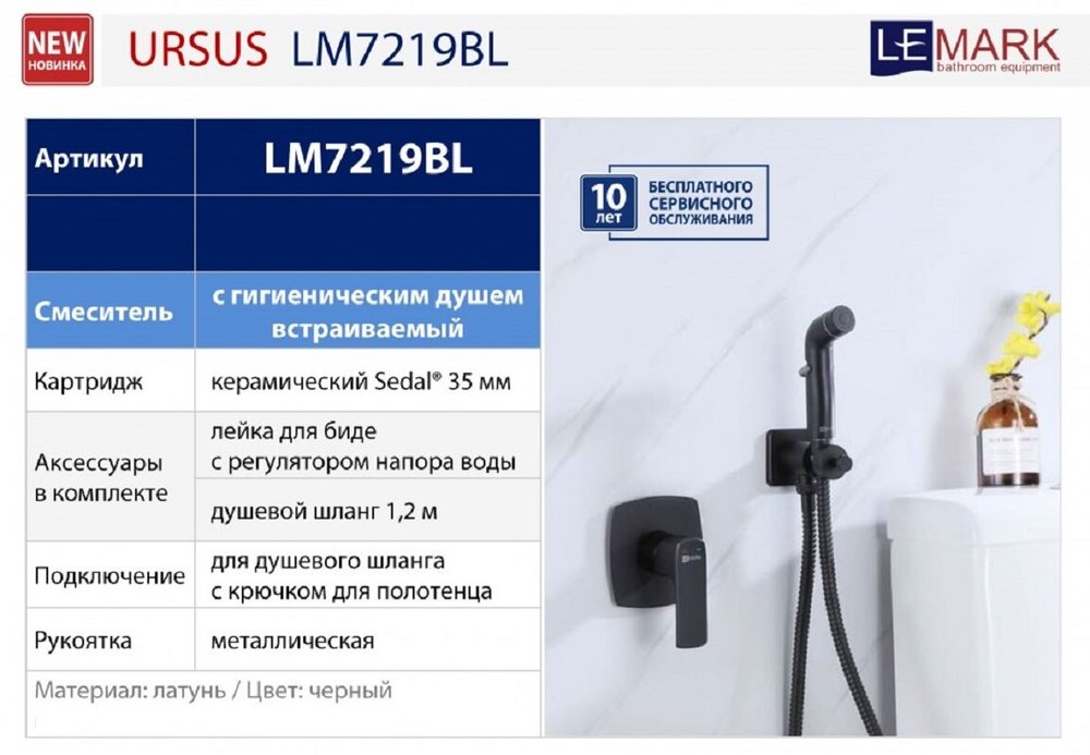 Гигиенический душ Lemark Ursus, LM7219BL, со смесителем, чёрный