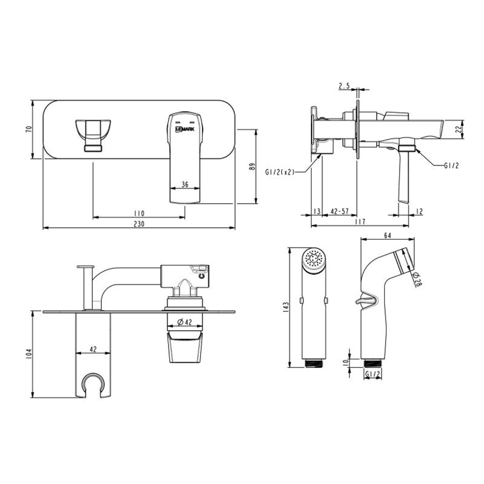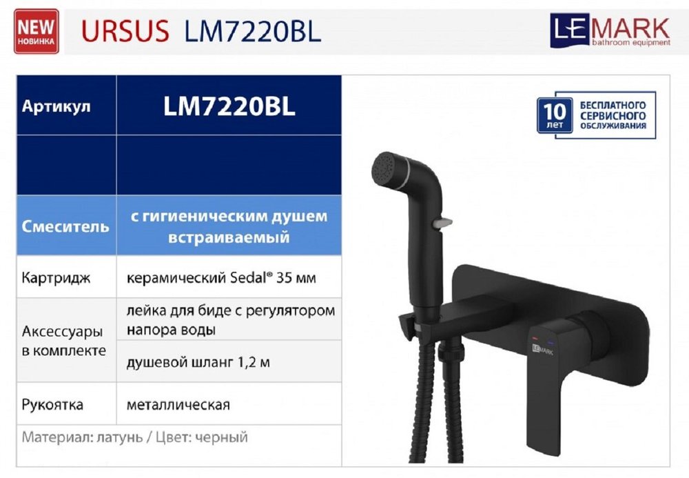 Гигиенический душ Lemark Ursus, LM7220BL, со смесителем, чёрный