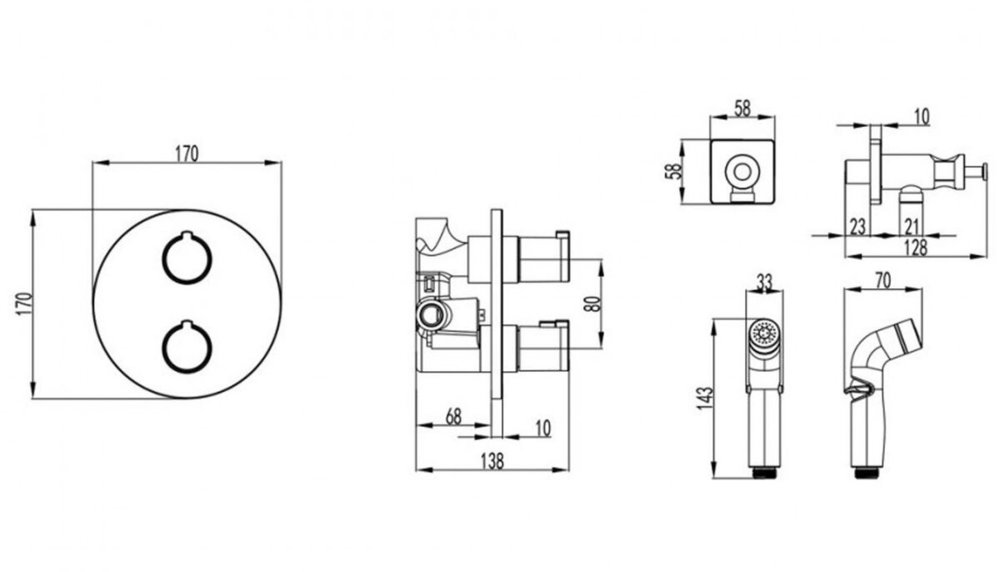 - Аксессуары в комплекте: лейка для биде с регулятором напора воды, шланг 1,2 м с функцией вращения лейки без перекручивания