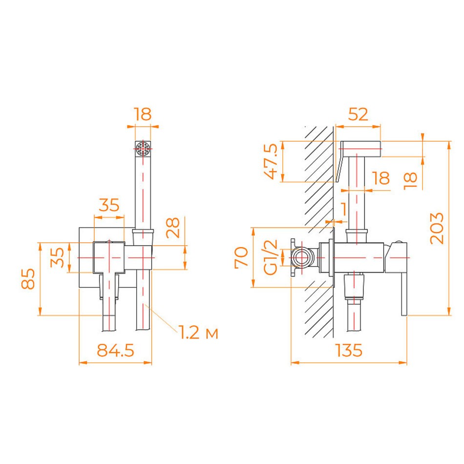 ВНИМАНИЕ! Шланг и лейка не рассчитаны на постоянное запорное давление, после использования необходимо закрыть подачу воды в смесителе.