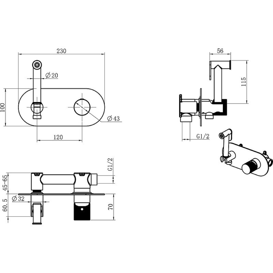 В комплекте поставки: cмеситель (внешняя и внутренняя часть), гигиенический душ со шлангом.