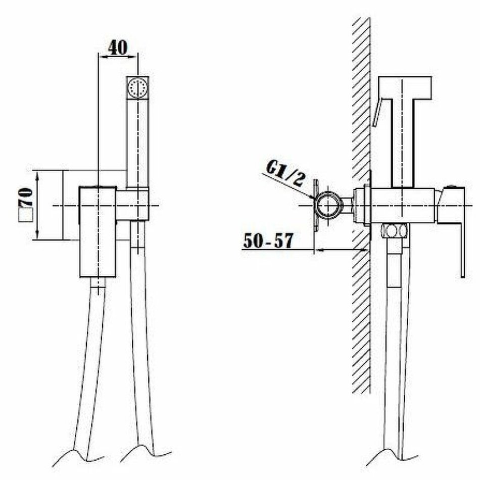 В комплекте поставки: смеситель (внешняя и внутренняя часть), гигиенический душ, душевой шланг, держатель лейки.