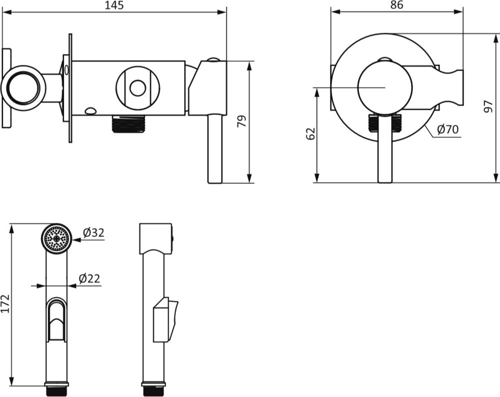 ВНИМАНИЕ! Шланг и лейка не рассчитаны на постоянное запорное давление, после использования необходимо закрыть подачу воды в смесителе.