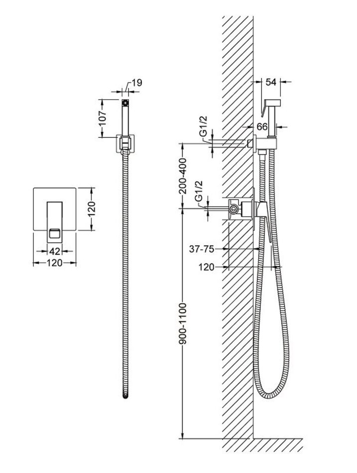 - Смеситель скрытого монтажа, с гигиеническим душем