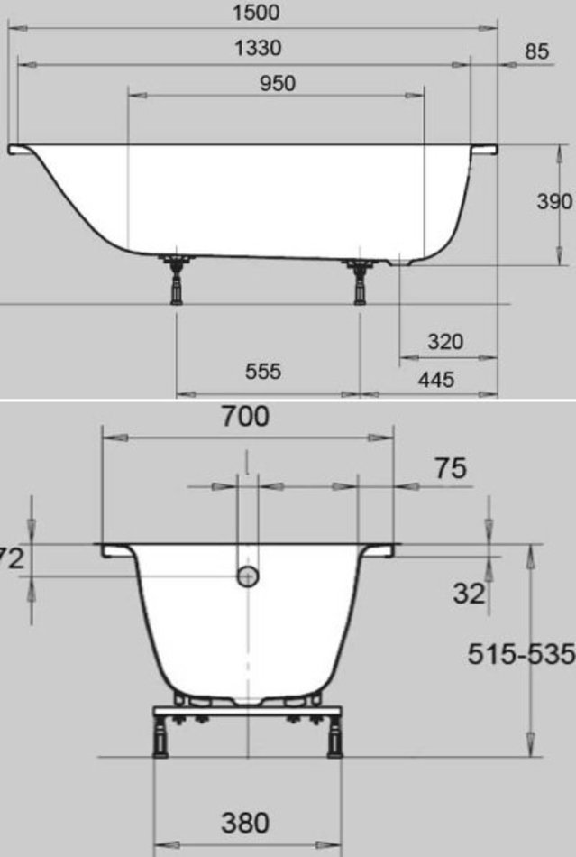 Стальная ванна Kaldewei Eurowa 150 х 70 см, цвет белый, 1196.1203.0001