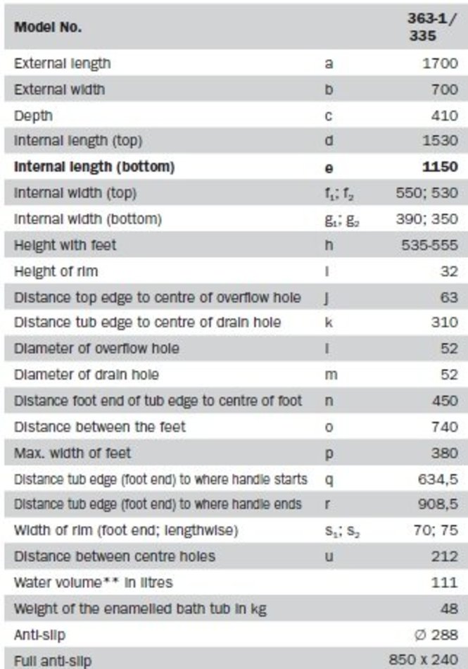 Стальная ванна Kaldewei Saniform Plus мод. 363-1, 170*70*41 см, easy-clean, 1118.0001.3001Стальная эмаль Kaldewei 3,5 мм обладает светостойкостью и УФ-стойкостью и не выцветает. Стальная эмаль Kaldewei 3,5 мм устойчива к воздействию всех косметических и медицинских добавок, а также духов, которые переносятся в ванну с кожного покрова или частей тела (например, красители для волос).Easy-clean - грязеотталкивающее покрытие. Вода на нем скатывается в шарики и затем просто снимается. При этом достаточно одного движения мягким, влажным полотенцем – и ванна сияет как новая.Kaldewei Antislip обеспечивает безопасность при вступлении в ванну. Нескользящая эмаль Antislip прочно связана со стальной эмалью Kaldewei 3,5 мм: структурированная поверхность из стойкой прожженной смеси кварцевого песка – для большей безопасности в ванне. Причем, она не только абсолютно гигиенична, но также долговечна, как и сама ванна.