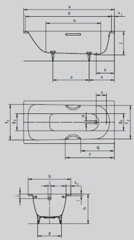 Стальная ванна Kaldewei Saniform Plus мод. 363-1, 170 х 70 см, без покрытия, 1118.0001.0001