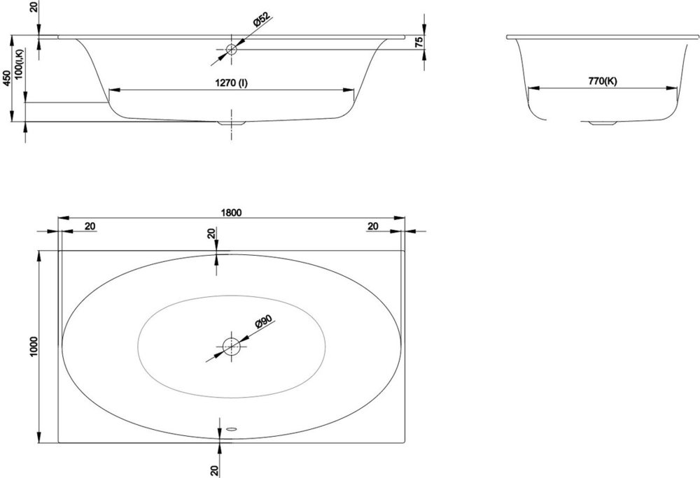 Ванна Bette Eve Glasur Plus 180 x 100 x 45 см, овальная, с шумоизоляцией, для удлиненного слива-перелива, 6043-000 PLUS