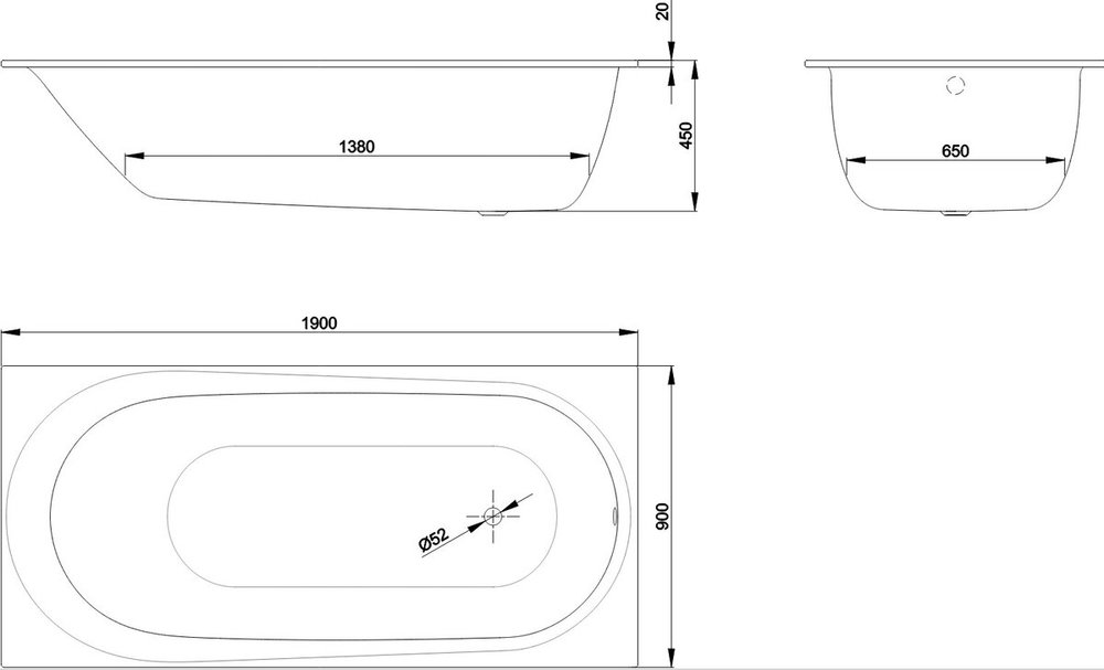 Ванна стальная Bette Comodo 1252-000 190 х 90 х 45 см с шумоизоляцией, белая