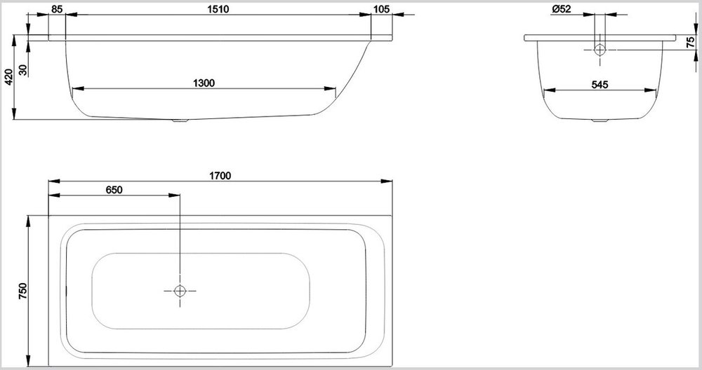 Ванна стальная Bette Select 3412-000 170 х 75 х 42 см с шумоизоляцией, белая