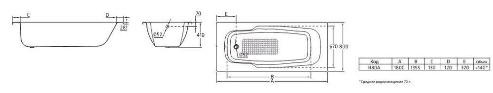 Ванна стальная B80A 180x80 с отверстиями для ручек выполнена из материалов, прошедших экологический контроль. Эмалевое покрытие устойчиво к воздействию света, химическим веществам и механическим повреждениям. Стиль исполнения ванны – современный.