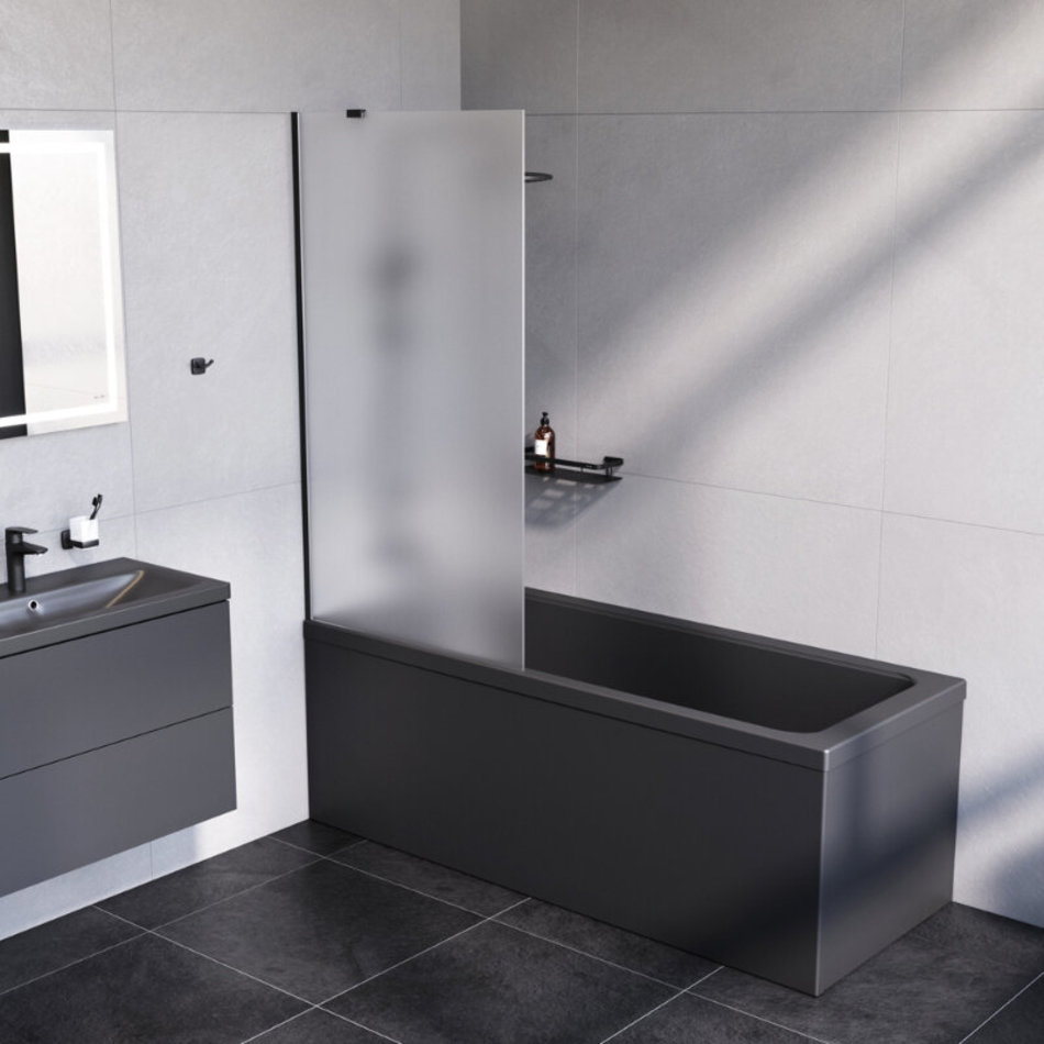 Душевая шторка на ванну Am.Pm Gem 80 х 140 см, неподвижная, профиль черный матовый, стекло матовое, W90BS-080-140BM