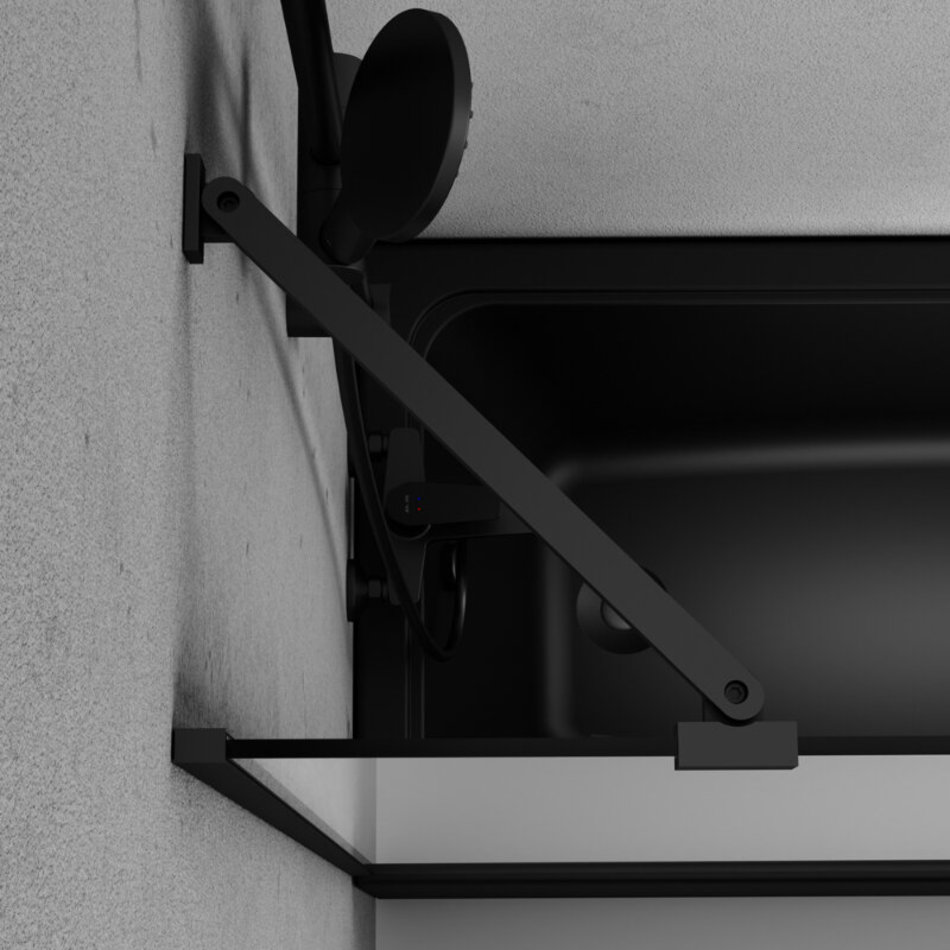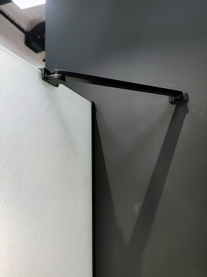 - Матовое покрытие профиля черного цвета идеально сочетается с матовым стеклом и придает продукту невероятно стильный вид