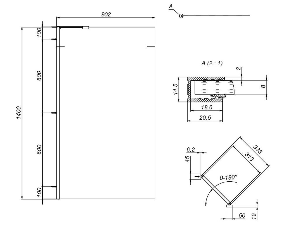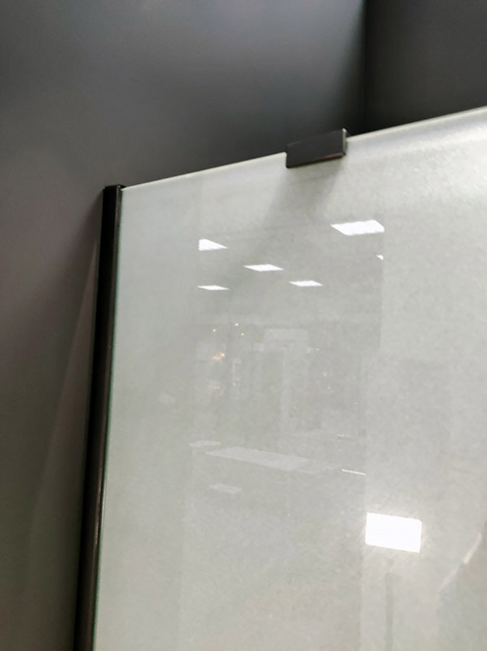 - Закаленное ударопрочное стекло толщиной 8 мм встроено во влагостойкий профиль глубокого черного цвета