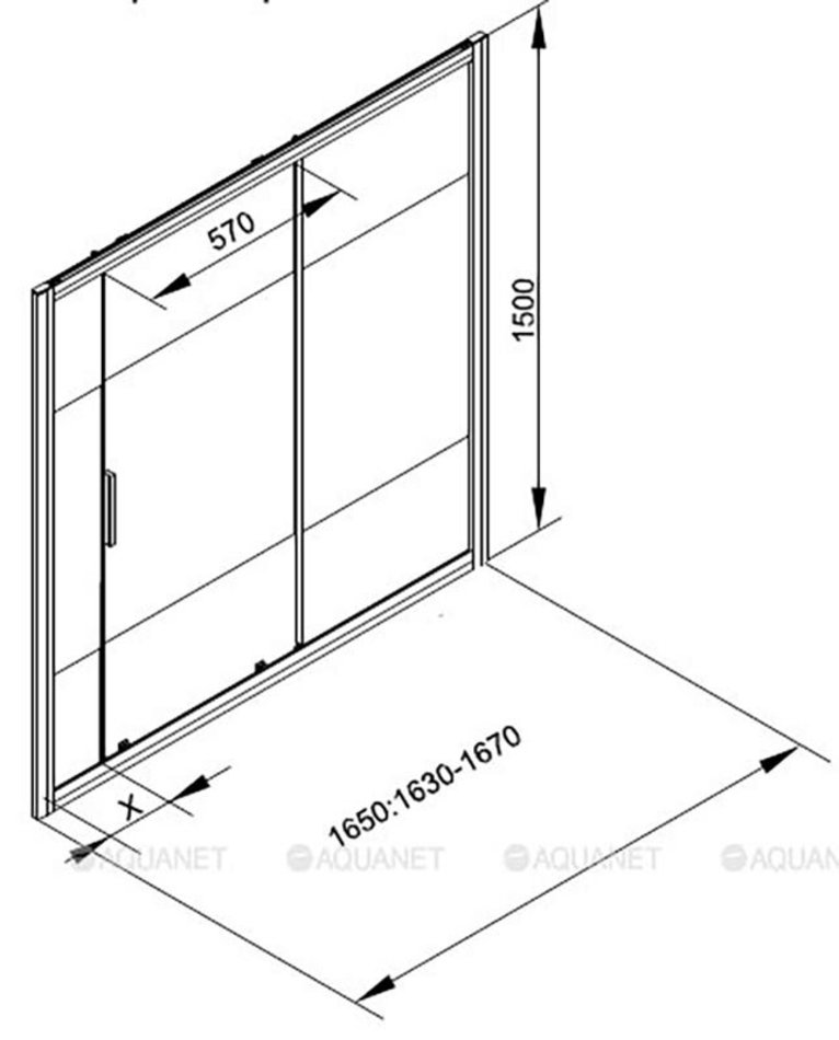 Душевая шторка на ванну Aquanet Practic, 165 х 150 см, стекла прозрачные с шелкографией, профиль хром, AE10-B-165H150U-CP