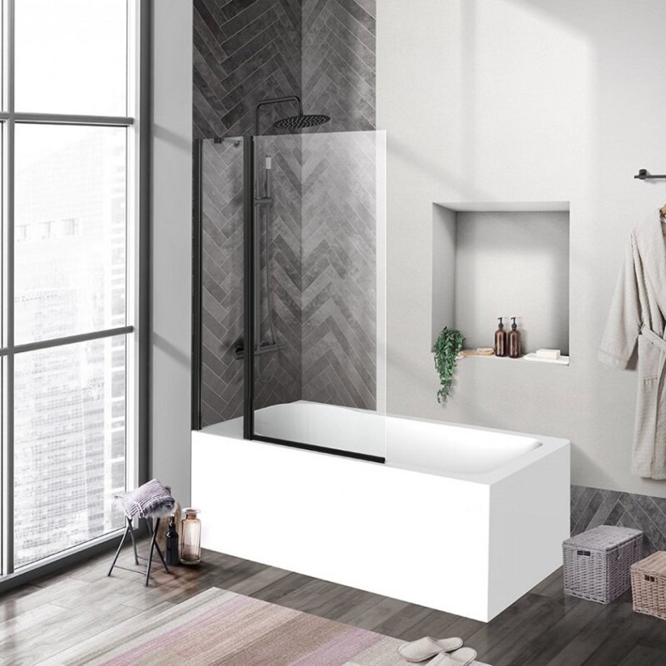 Душевая шторка на ванну BelBagno Uno, 100 х 150 см, стекло прозрачное, профиль черный матовый, UNO-V-11-100/150-C-NERO