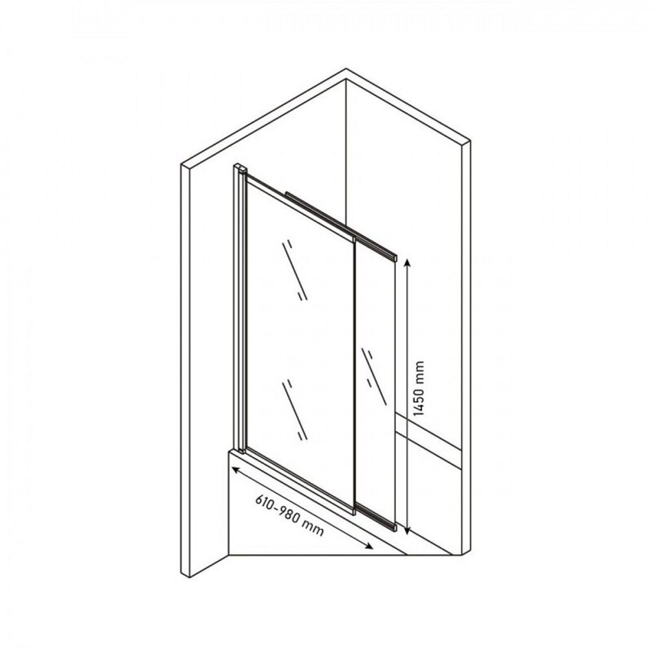 Душевая шторка на ванну Berges River S Slider Black 980, 065015, 98 см, стекло прозрачное, профиль черный матовый