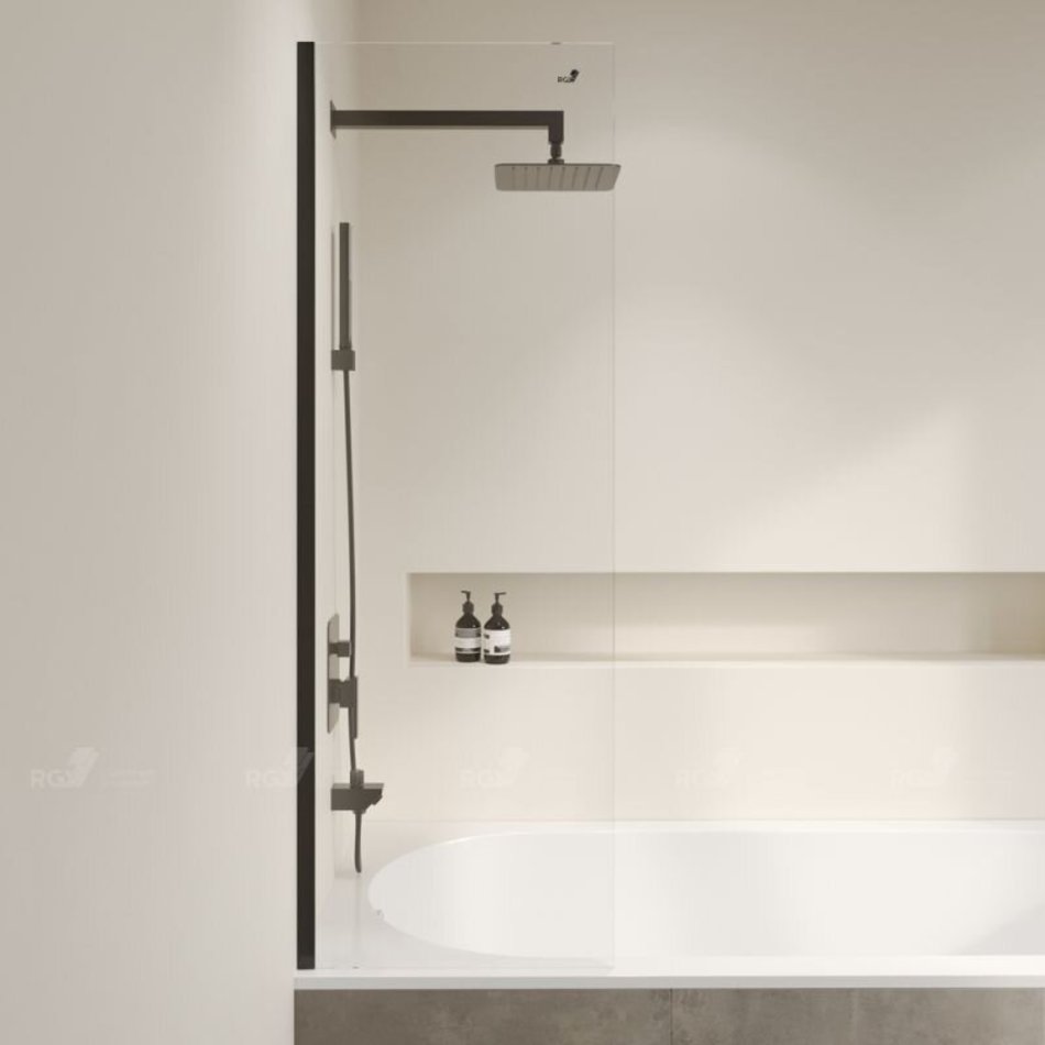 Шторка имеет неподвижное крепление и оптимальный размер для установки на любую ванну, а сдержанный черный цвет профиля позволит подобрать аксессуары в тон - теперь вы можете создать индивидуальный дизайн по доступной цене!