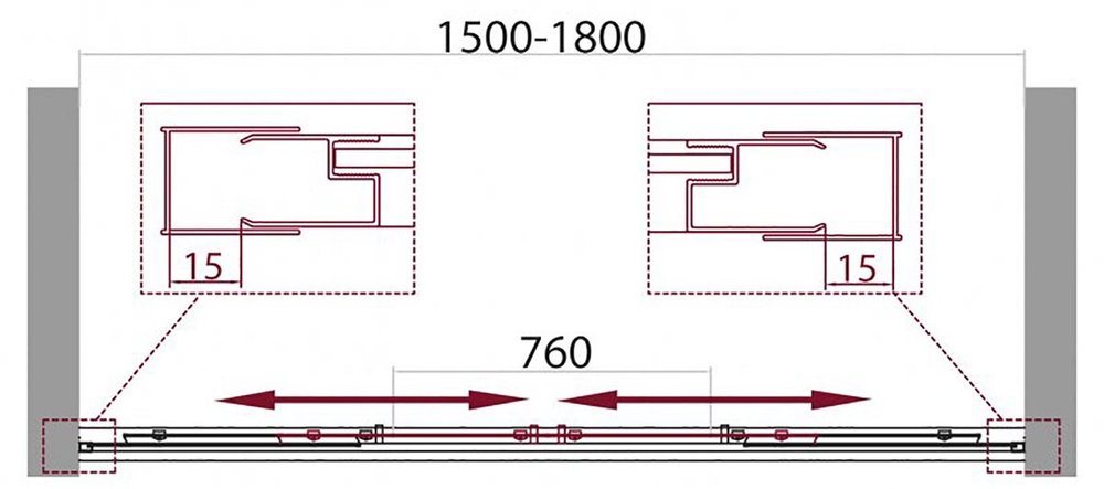 - Регулировка ширины: предусмотрена за счет боковых профилей