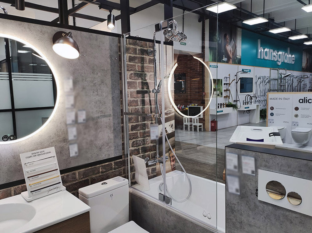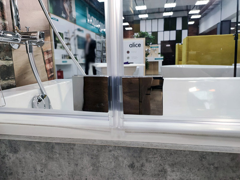 - Шторка на ванну с двойной панелью с хромированными петлями.