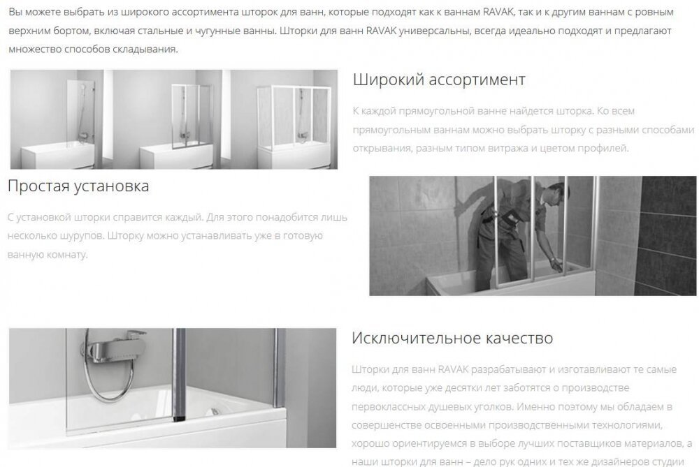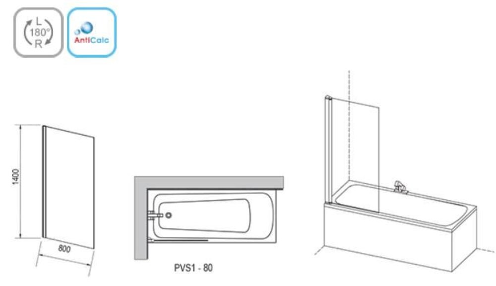 Штора устанавливается на прямоугольные ванны (Classic, Sonata, Campanula II, Vanda II и Lilia) или на какую-либо классическую прямоугольную ванну с ровным передним бортом. Повернув РVS1 на 180°, получите Л/П варианты входа.