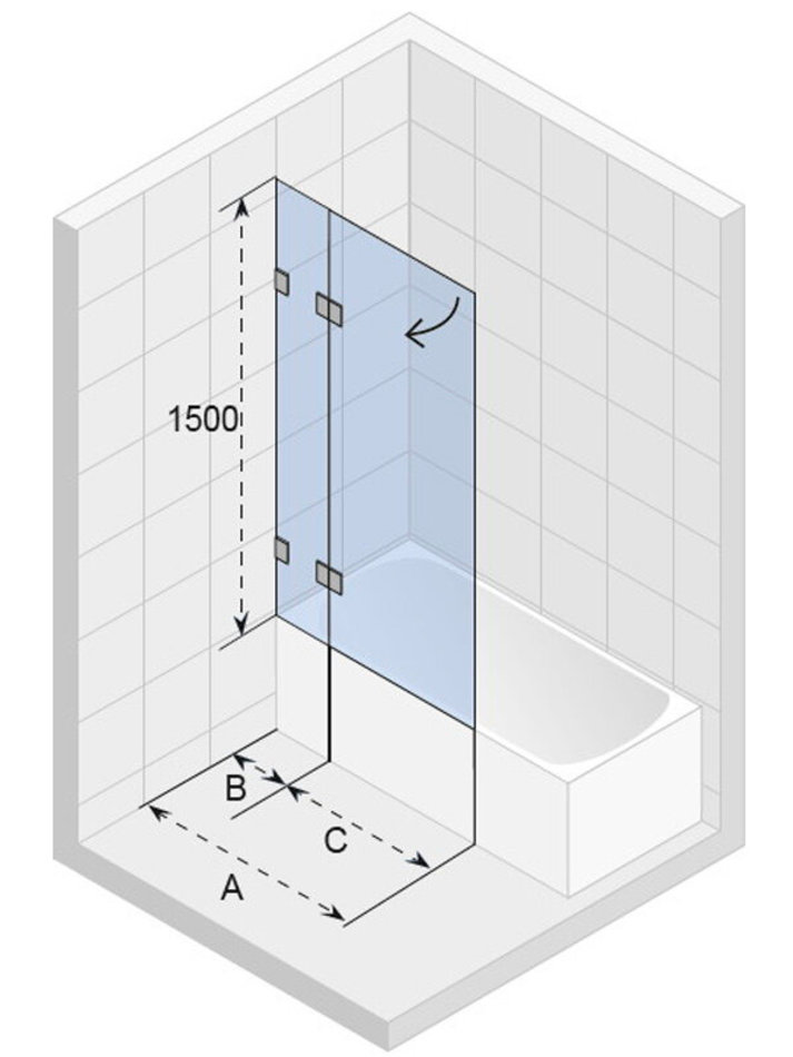 Шторка для ванны Riho VZ Scandic NXT X109V, 85x150 см, цвет профиля черный, стекло прозрачное, левая/правая