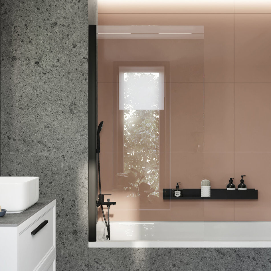 Шторка для ванны Stworki Стокгольм GV-861 MT, 50 х 150 см, профиль черный матовый, стекло прозрачное, 3GW248TTKK000